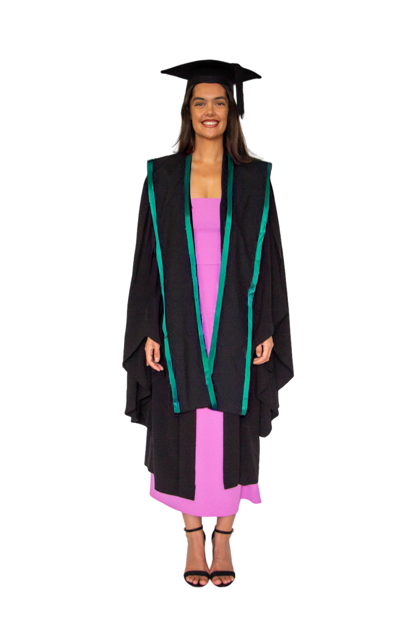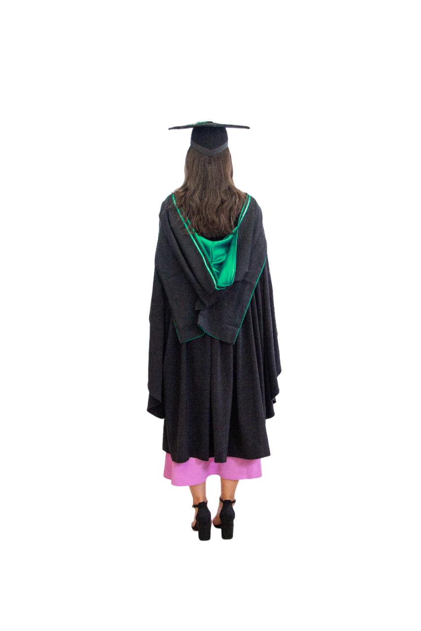 The hood for the Postgraduate Diploma in Education (ECE) is lined with green satin and has a black and green stole.